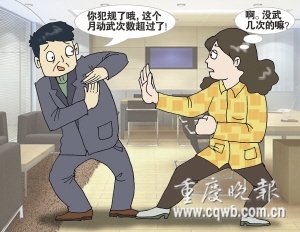话不投机时,妻子总喜欢靠武力取胜。结婚半年来,32岁的张先生因此三天两头就要吃回苦头。前日,在岳父监督下,夫妻俩书面约定:妻子以后每周最多只能出手一次,否则就搬回娘家住3天。