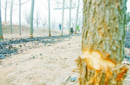 近百棵杨树惨遭刀砍火烧“俺这儿高速路旁的近百棵杨树不知招谁惹谁了,竟惨遭刀砍、火烧(如图)。奇怪的是,广告塔前的杨树都遭了毒手,可广告塔后的杨树却没事。”昨天上午,郑州机场港区新港办事处寺东高村一村民代表反映。