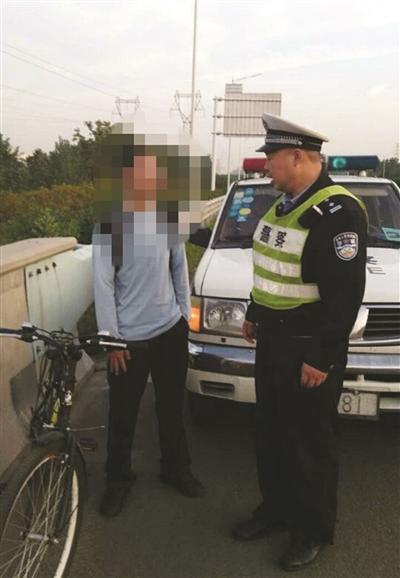 前天清晨5点多,高速五大队交警在机场高速上巡逻,突然发现前方辅道上有个人在骑车,不时东张西望。虽然此时高速上车不多,可因为视线不是太好,一些车辆经过时还是来个刹车,看上去十分危险。交警赶紧驾车上前,并通过喊话的方式,让骑车人停了下来。骑车人是名年轻男子,看到交警后,他十分腼腆,站在一旁不说话。“骑车上高速十分危险,你不知道吗?”听到交警这话,男子先是道歉,然后解释说,自己在附近上大学,因为此前从未来过南京,所以有种好奇感。“我专门买了辆自行车,一有时间就在周边骑骑,熟悉下环境。”男子说,他清晨出学校,不知为何就骑上了高速,心想既然都上了,就看看吧。