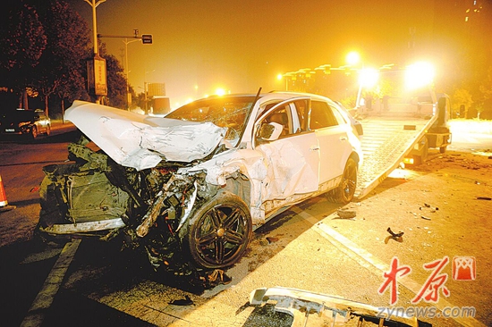 现场一名围观群众表示,这辆金杯车是由北向南逆行,奥迪车速很快,与其相撞后,造成身后的标致追尾,而最后面的雪佛兰又撞上了标致,因此造成好几人受伤。