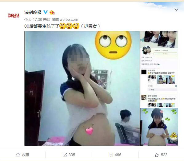 据@法制晚报微博,一位疑似“00后”的准妈妈在网络上晒出怀孕照,并自曝出生于2000年,是不折不扣的00后。这位晒出怀孕照的“00后”,强调自己已经结过了婚。