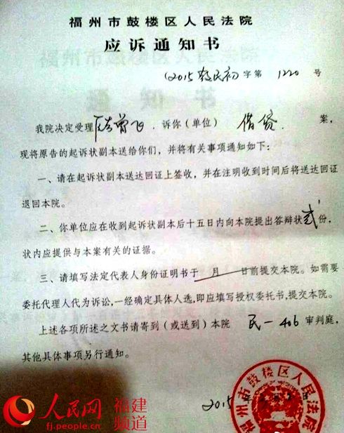 应诉通知书