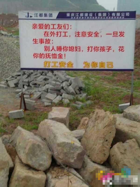 重庆工地现搞笑警示牌:发生事故别人睡你媳妇