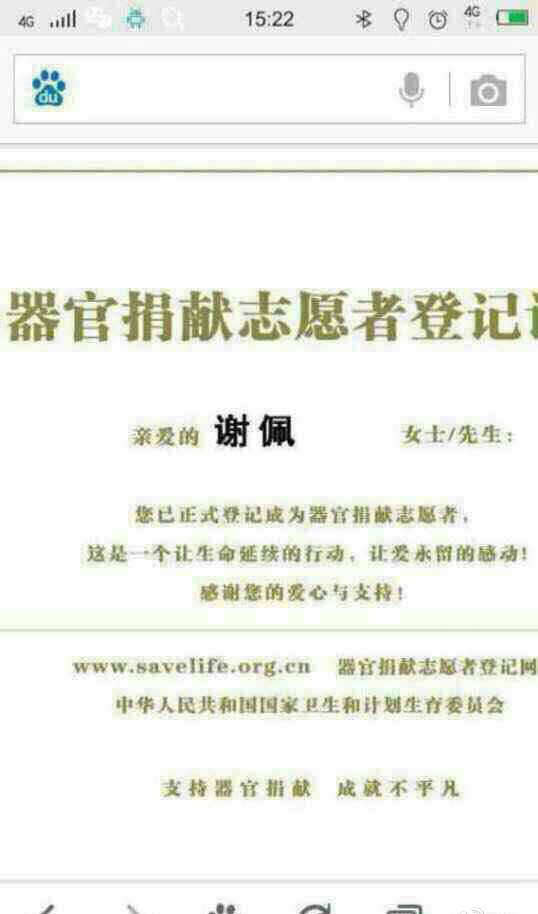 确诊后的半年,谢佩经历了两次次手术和9次化疗,依然没法控制病情。“医生说这次手术必须摘除卵巢,这样可能延长一年时间,后面的情况得看运气,如果不开刀的话人随时都可能离开。”听到医生诊断后,谢佩泪如雨下,转身瞒着家人在网上签下了器官捐献协议书。“生活了20多年,总觉得没有给世界留下什么,如果我的器官能延续更多人的生命,也是我曾活过的印记。”谢佩写下了上千字的内心独白,向大家公开了病情。