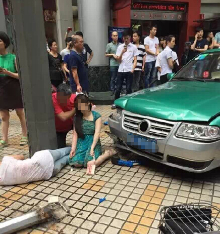 广州闹市出租车失控铲上人行道 撞倒多名行人