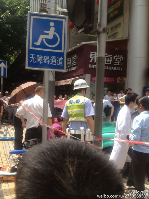 广州闹市出租车失控铲上人行道 撞倒多名行人