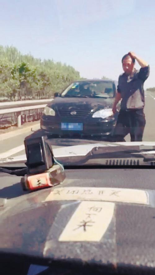 意外发现黑轿车高速上逆行