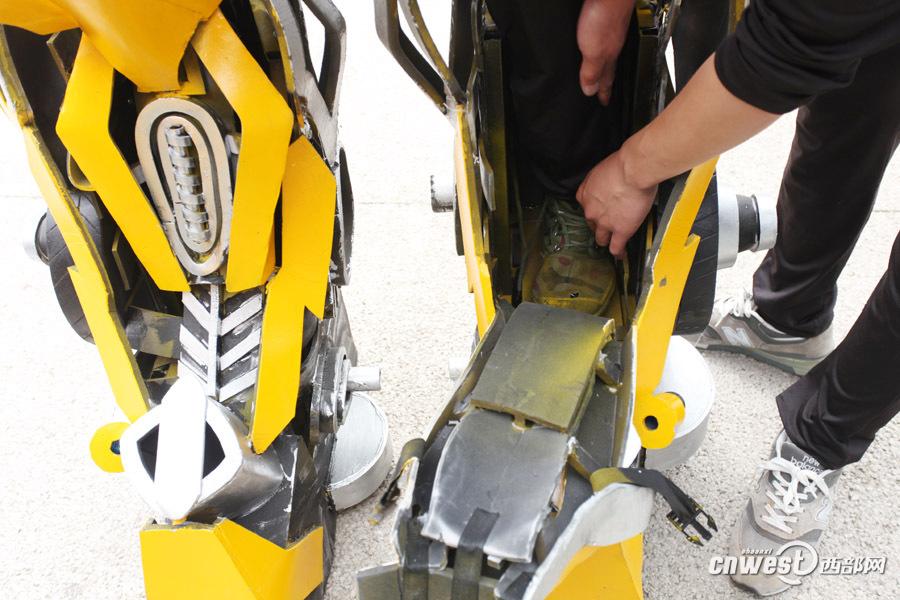 西安街头现真人版变形金刚 60斤盔甲累坏演员
