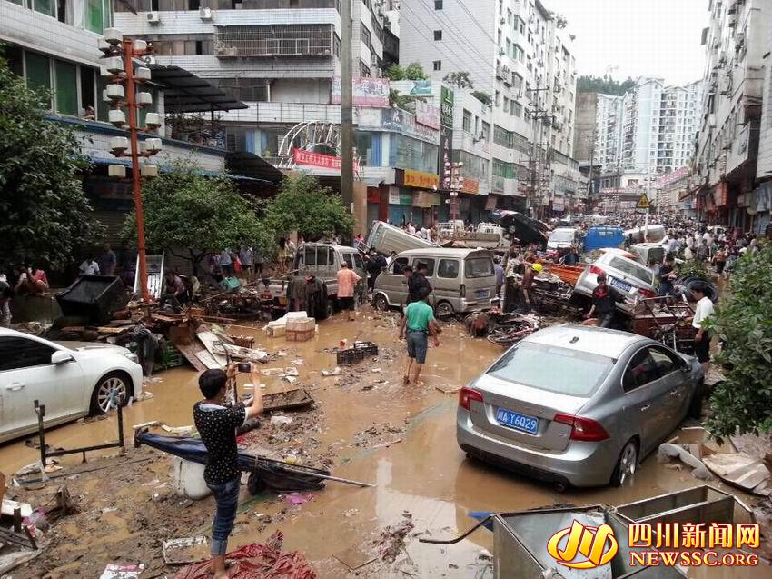 6月28日,南江县普降暴雨,引发山洪,导致南江河沿河城镇全部受灾。其中,南江县城区城河街受灾较为严重。28日傍晚,洪水退去后,街上泥泞不堪,一片狼藉。一度被洪水淹没的汽车也露出各种姿态,一辆汽车竟然骑在了一辆三轮车上。记者陈连波图片来源:四川新闻网