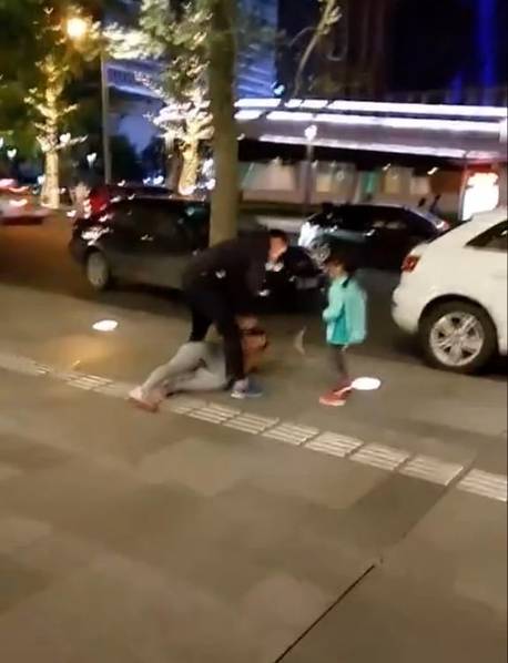 有路人称:事情起于男子怀疑自己的妻子出轨,于是在路上大打出手。路人纷纷上前阻止。