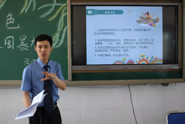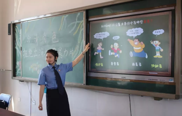 随后,绥化市院第七检察部干警刘天明为师生们带来了一场暑期安全教育,干警邹敬楠以“分清角色,拒绝出演校园暴力片”为题为师生们上了一堂法治课。